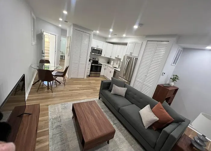 En la propiedad hay una cocina completa con nevera, un horno y cristalería, además de servicio de tetera/cafetera. El Apartamento 2Br Columbia Heights Apt Walk 2 Metro & Shops está situado a 20 minutos en coche del aeropuerto Nacional Ronald Reagan de Washington.